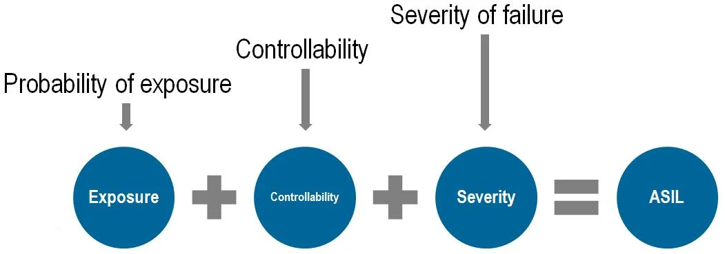 The estimation of this risk, based on a combination of the probability of exposure, the possible controllability by a driver, and the possible outcome’s severity if a critical event occurs, leads to the ASIL. The ASIL does not address the technologies used in the system; it is purely focused on the harm to the driver and other road users.
