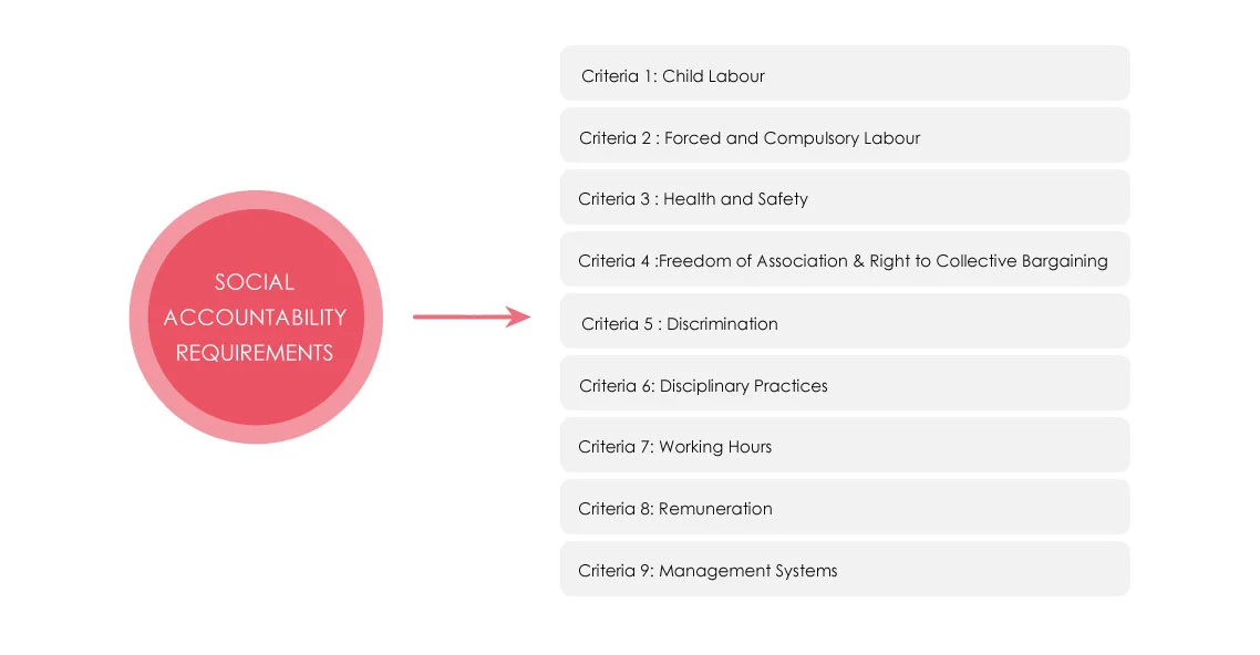 This standard specifies various criteria related to work force which the management is required to establish in the organization and comply with their requirements. These requirements apply equally and universally to all organizations irrespective of their geographic location, industry sector, business volume and organization size. The organization shall also comply with national and other applicable law, other requirements to which the company subscribes, and this standard. Social Accountability Criteria have been based upon principles of various international instruments related to labour.